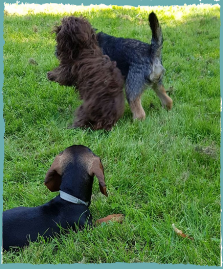Sie ist verspielt und zutraulich zu Menschen. Im Hundeverein tollt sie mit Vergnügen mit den anderen Hunden.